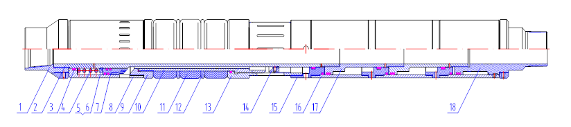 該封隔器由反循環(huán)洗井機構(gòu)、封隔件(膠筒)密封部分、座封機構(gòu)等部分組成。